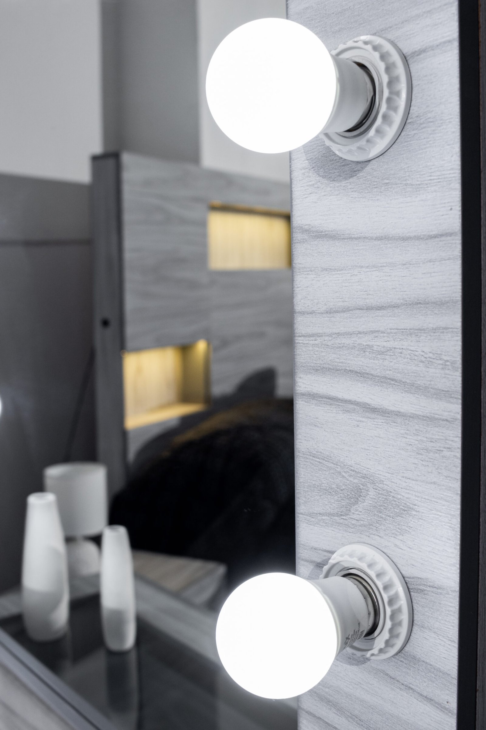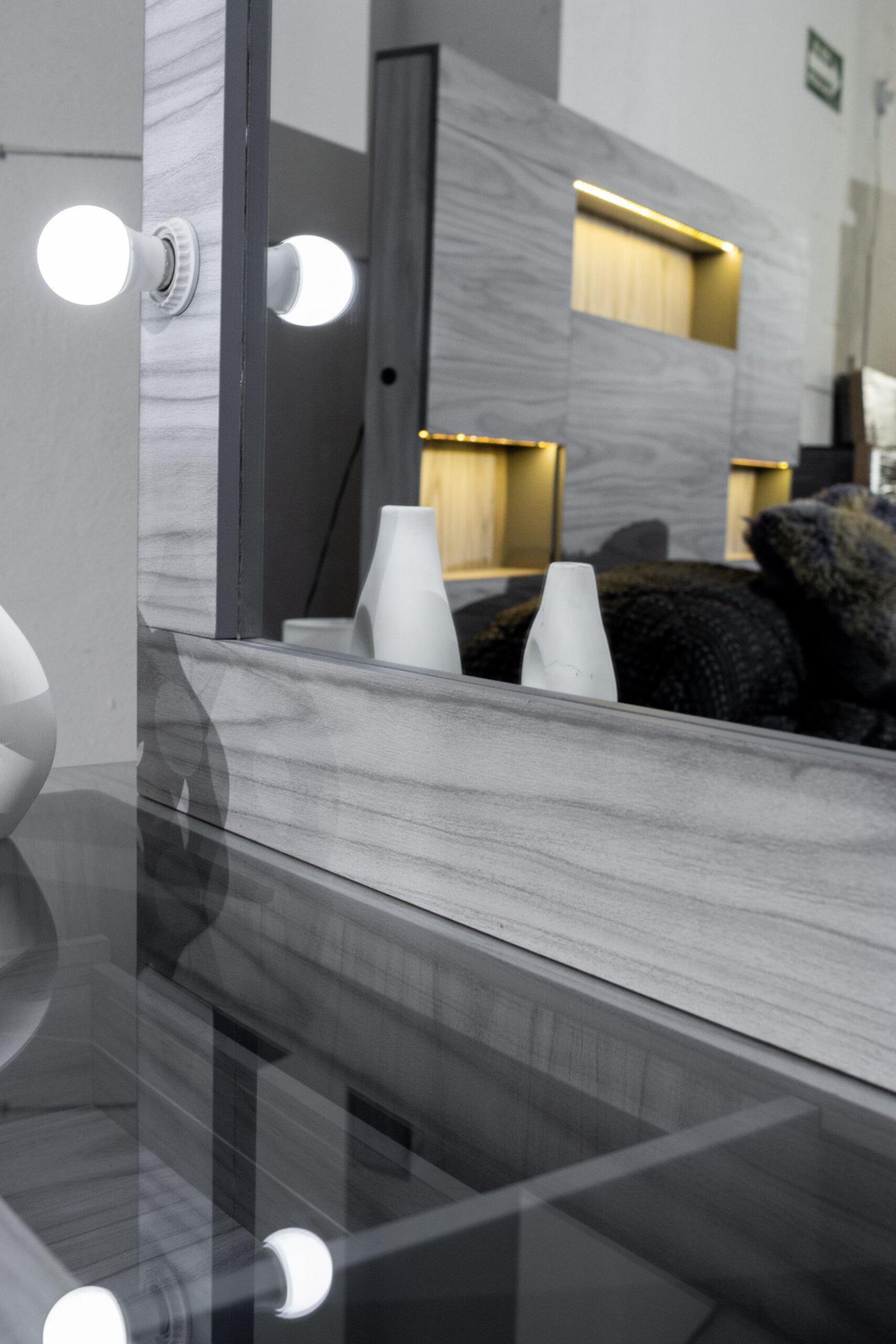 El tocador tipo Vanity completa la recámara con sus luces tipo hollywood